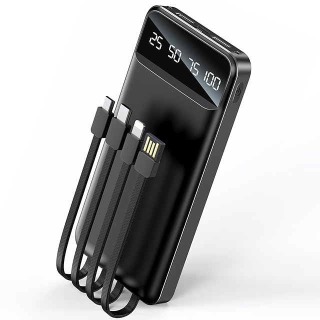 【4本ケーブル内蔵・5台同時充電】 この多機能モバイルバッテリーは、Lightning、Type-C、Micro USB、USBの各入力を内蔵しており、あらゆるデバイスの充電に対応します。USB-CとMicro-USBの2種類の入力オプションがあり、AppleユーザーやType-C端末の所有者にとって特に便利です。1本のケーブルでほとんどのデバイスを充電できるため、持ち運びも簡単です。さらに、2つのUSB出力ポートが追加されており、USBケーブルを使用することで、同時に最大5台のデバイスを充電できます。これにより、家族や友人との旅行や外出先でも、1つのケーブルでみんなのデバイスを充電することが可能です。コンパクトで持ち運びやすく、充電のストレスを解消します。