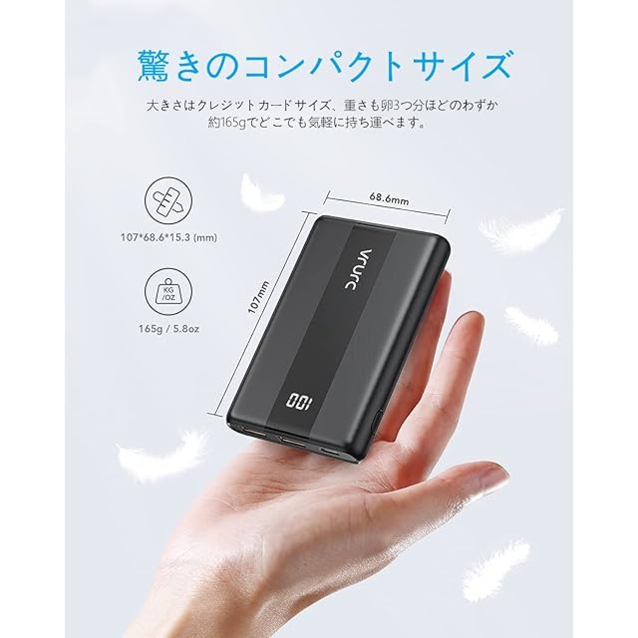 【小型 軽量で持ち運びやすい】:VRURCの小型 軽量モバイルバッテリーを持って、コンセントのない場所や外出でも、これ一台あれば安心して手軽にスマホを充電できます。重さは卵3個分の165g超軽量モバイルバッテリーと厚さがただ1.53cmという超薄型モバイルバッテリーです。旅行や出張などに持ち運ぶことで、充電がなくなってしまった緊急時の応急処置としても便利なアイテムです。【上質なデザイン】:汚れにくく傷のつきにくいスタイリッシュなメッシュ加工、USB充電ケーブルも付きて、液晶部にフィルムを貼るなど細部までこだわり、使いやすさとデザイン性を両立しました。