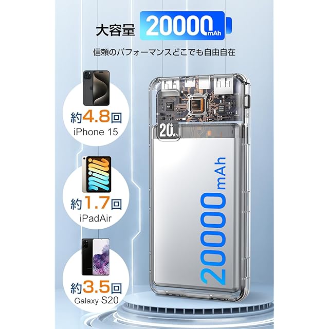 【20000mAh 超軽量 モバイルバッテリー】20000mAhの大容量を備えながらも、その驚くべき軽さと薄さで日常生活に負担をかけません。どこへでも気軽に持ち運べるこの モバイルバッテリ ーは、あなたのデジタルデバイスに絶えず安定したパワーを供給します。バッグに入れてもかさばらない、出張、旅行と日常の完璧な モバイルバッテリー です。
