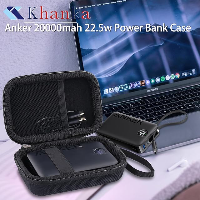 【 ケースのみの販売】Anker Power Bank (20000mAh, 22.5W, Built-In USB-C ケーブル) Anker A1647モバイルバッテリー収納ケース,ブラック-Khanka