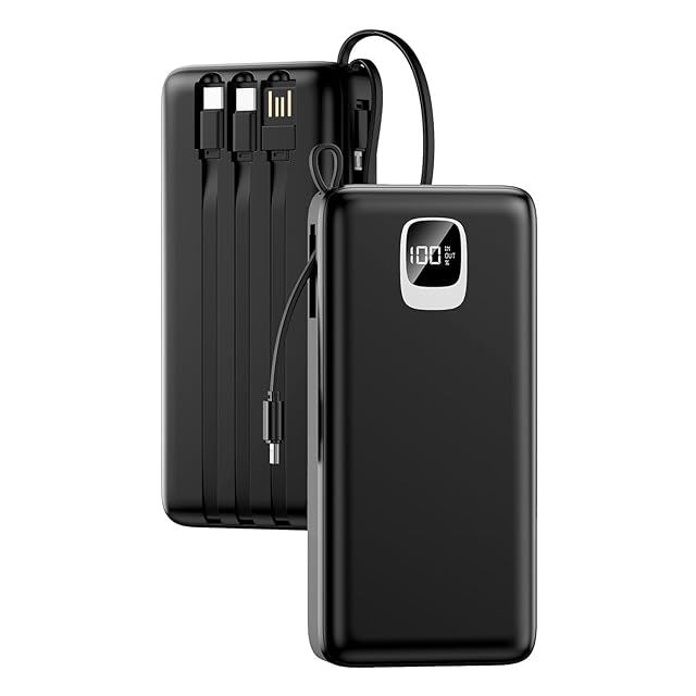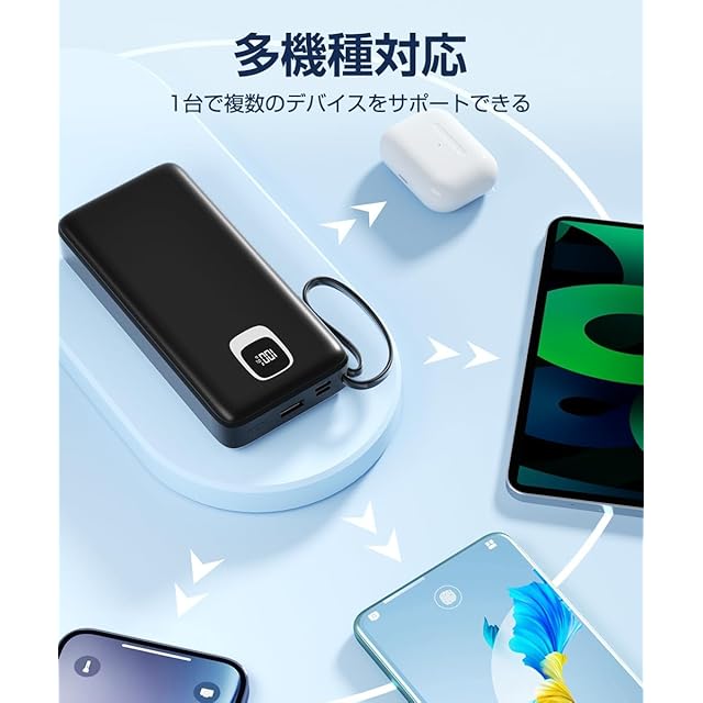❀〖ケーブル内蔵モバイルバッテリー〗新しいモバイルバッテリー、それは4本のケーブルが内蔵され、あなたのモバイルライフを革新します。iPhone用、Type-C、Micro、USB-Aの4つ機種に対応し、あらゆる機器に簡単に接続できます。予備のケーブルを持ち歩く手間を省き、いつでもどこでもスマートフォンやタブレット、その他のデバイスを充電できる便利な解決策です。また、ケーブルが内蔵されているため、絡まったり紛失したりする心配もありません。