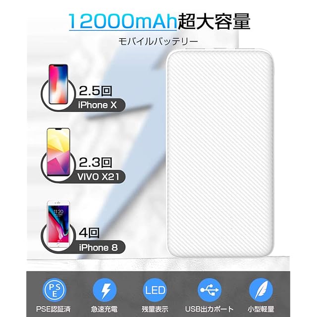 【大容量、小型】縦140mm、横70mmの小型タイプで、12000mAhの大容量モバイルバッテリーであります。IPhone、Androidスマホなどに数回充電できます。簡単にカバンやポケットに収納できるサイズですので、日常充電、地震、災害、旅行、出張、アウトドア活動などの必携品です。