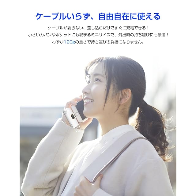 【挿すだけで充電可能&2台同時充電可能】ライトニング端子一体型によりケーブルいらずで充電できます。充電しながら快適なスマホ操作を実現されました。さらに、Type-Cケーブルを内蔵しているので、2台同時充電が可能になります。【ポケットにも入るコンパクト設計&約120g】小さいバッグやポケットにも収まるコンパクト設計を実現されました。外出時などの持ち運びにも最適です。重さは約100gと軽量で持ち運びの際に負担をかけません。