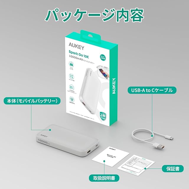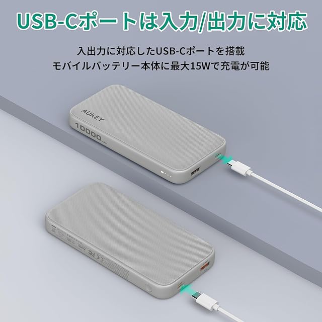 ※本製品にはUSB充電器は付属しておりません。モバイルバッテリー本体の充電を行う際はUSB-A to Cケーブルでの充電に対応したUSB充電器を別途ご用意ください。