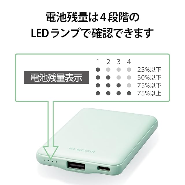薄くて軽く、持ち運びに最適な、12W出力、容量5000mAhのコンパクトなモバイルバッテリーです。