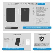 ❸スタンド付きで外出時だけでなくデスクでも活躍。パススルー充電や2台同時充電も可能!