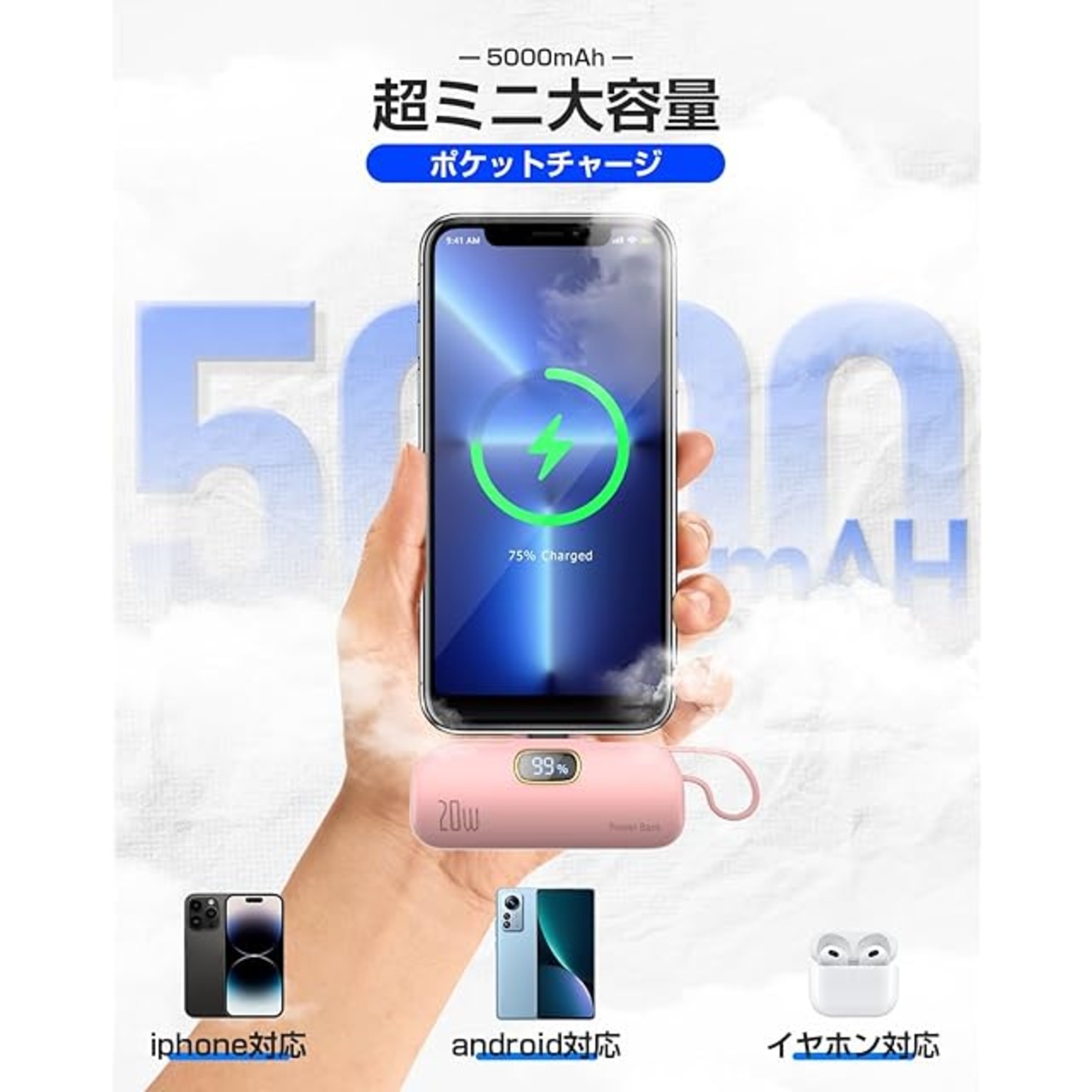【20W急速充電&5000mAh大容量】20W出力ポートを備え、対応機器を高速充電できます。わずか30分で0%から50%までに充電可能な急速充電モバイルバッテリーです。従来モデルより充電時間を50%も短縮することが実現されました。iPhone 14を約1回充電できるコスパ高い5000mAhモバイルバッテリーです。外出や旅行、防災グッズ、アウトドア、出張、停電時の備えなどに最適です。