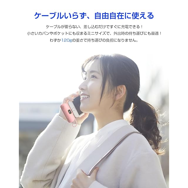 【挿すだけで充電可能&2台同時充電可能】ライトニング端子一体型によりケーブルいらずで充電できます。充電しながら快適なスマホ操作を実現されました。さらに、Type-Cケーブルを内蔵しているので、2台同時充電が可能になります。【ポケットにも入るコンパクト設計&約120g】小さいバッグやポケットにも収まるコンパクト設計を実現されました。外出時などの持ち運びにも最適です。重さは約100gと軽量で持ち運びの際に負担をかけません。