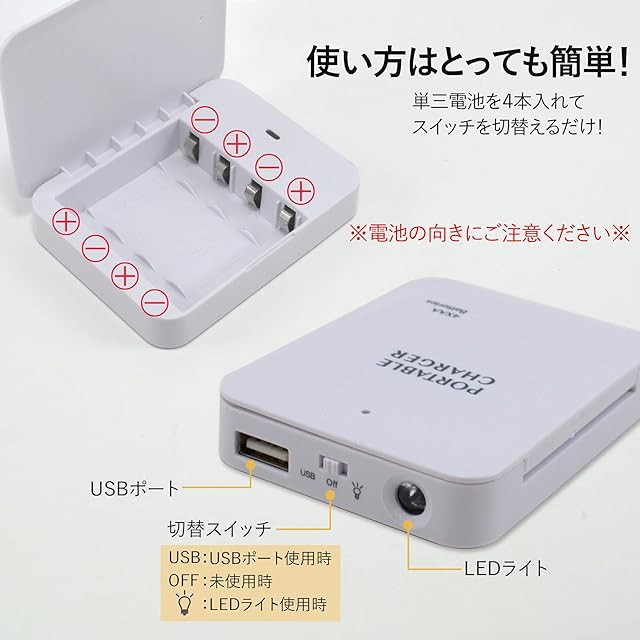 ※充電ケーブル、乾電池は付属しません。
