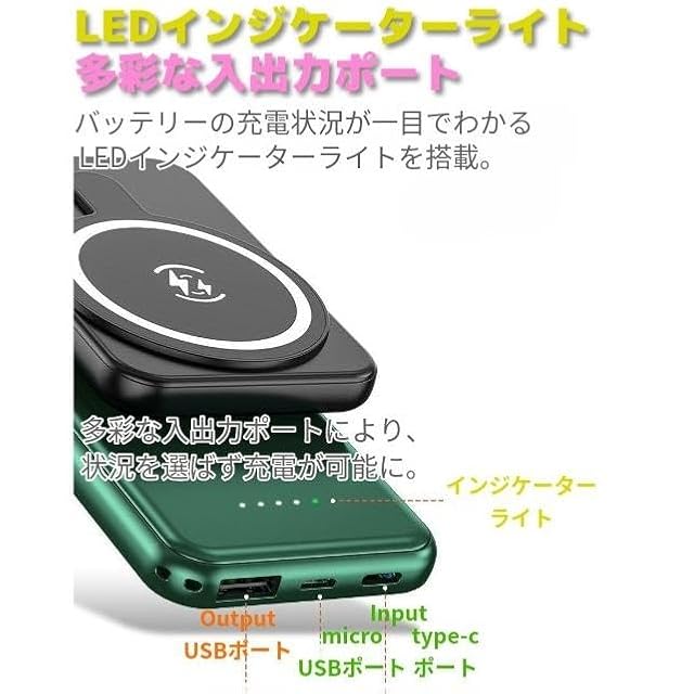最新モデル 大容量 Magsafe対応 マグセーフ対応 磁器吸着 ワイヤレス充電 モバイルバッテリー PSE基準適合品。