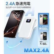 ✅【ケーブル内蔵・次世代の充電スタイル】 モバイルバッテリー 急速充電 4本の内蔵ケーブルにより、アダプターや外部ケーブルが不要。コンパクトなデザインで、バッグやポケットに簡単に収まるサイズ感を実現しました。旅行や外出先でも煩わしい準備が不要で、充電がもっと快適に。