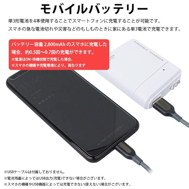 スマホの急な電池切れや災害などのもしものときに家にある単3電池で充電できます。