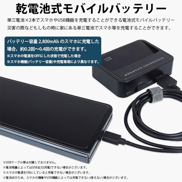 災害の際などもしもの時に家にある単三電池でスマホ等を充電することができます。