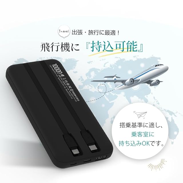 ☀【3台同時充電】本製品は2本のケーブルが一体型になっているのですぐに充電ができる便利なアイテムです。ケーブルをバッテリーの背面に収納できるため、ケーブルが絡まらずスッキリと持ち歩くことができます。Type-C/iPhone出力ケーブル+1つのUSB-A出力ポートで3台の設備を同時に充電できます。