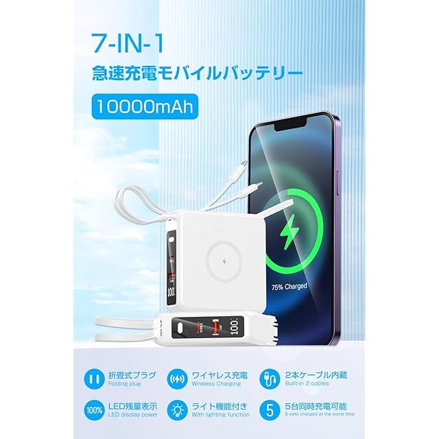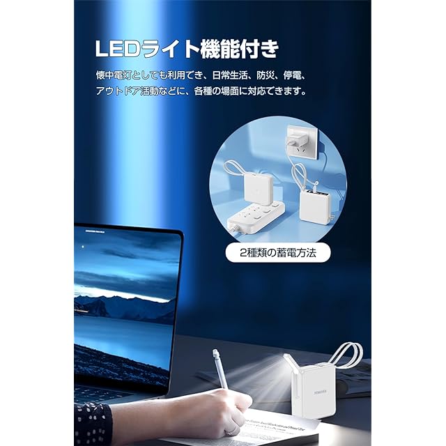 【自動判別機能&安心充電】接続された端末に応じて自動的に最適な電流量を検知できるSmart ICと過充電保護、過放電保護、過電圧防止、過電流保護、短絡保護などの多重保護システムを搭載しており、高効率充電を行いながら、モバイルバッテリー本体と大切なデバイスを保護できます。長期間使用しても安心してください。パッケージ内容:モバイルバッテリー*1、取扱説明書*1。