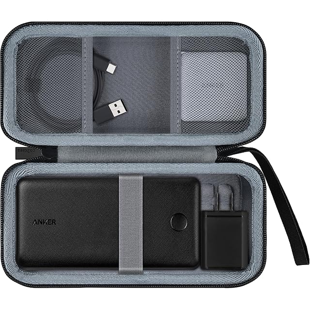 【持ち運びに便利なデザイン】ケースは、頑丈なストラップ付きは旅行中にanker powercore essential 20000 pd 20wを持ち運び便利のように設計されております。