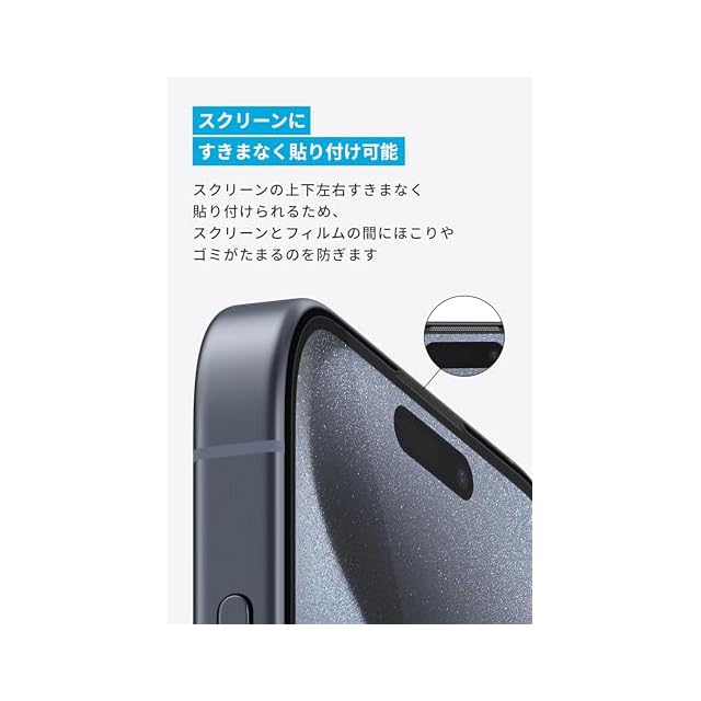 2ステップで簡単取り付け: iPhone 16 Plus / 15 Plus専用高解像度フィルム パッケージが貼り付けキットになっており誰でも素早くずれずに取り付け可能です。