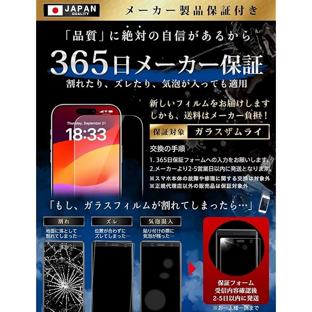 【最先端の第3世代技術】柔軟性と強度を兼ね備えた化学強化ガラスを採用。硬度10Hの高強度に加え、長期劣化に強い柔軟性をプラス。「より割れない」「より浮かない」「角割れしない」ガラスフィルムです