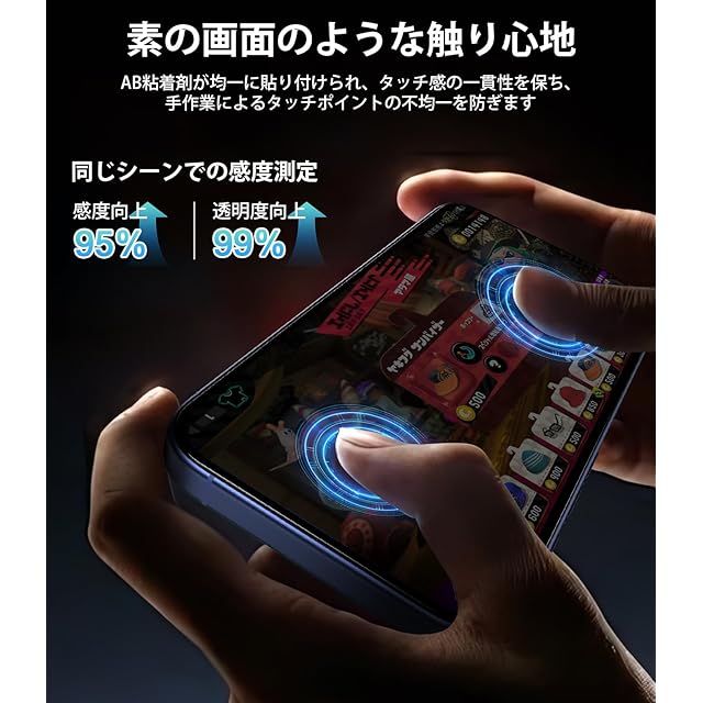【薄型で負担なし・快適な握り心地】この保護フィルムは、わずか0.33mmの薄型設計を採用しており、素のスマートフォンのような手触りを実現しています。画面の感度を損なうことなく、スマートフォンの厚みや重量を増すこともなく、持ちやすさを保ちながら、軽快で快適な使用感を提供します。精密な厚さと重量の検査により、保護フィルムは強力な保護を実現しつつ、スマートフォンに余計な負担をかけることなく、優れたユーザー体験を確保します。