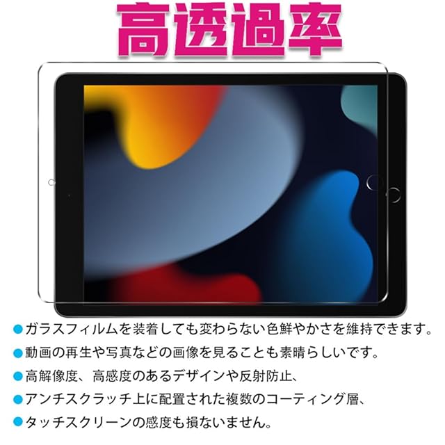 ⭕【対応機種】iPad 10.2(iPad 9世代 2021/8世代 2020/7世代 2019 )用 ガラスフィルム。ご注文の際に、モデル番号を対照し、確認をお願いします。極薄の厚さでタッチスクリーンの反応を損なわず、快適な操作が可能。優れたウィンドウディスプレイを持ち、なめらかな指滑りを実現するリアルガラスを採用、好感度で快適操作。