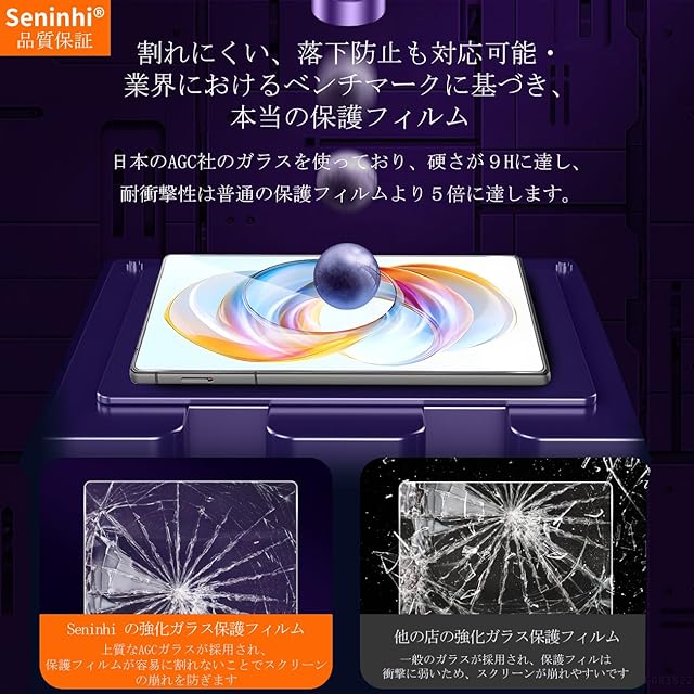 【高品質の材料-AGC素材】:業界最高レベルの9H+硬度を有し、4.5時間以上の高温クエンチ処理を受け、スクリーンプロテクターは、通常のガラスよりも5倍高い125MPaの圧縮強度を持っています。 シリコンコーティングを内蔵して衝撃を緩和します、画面へのダメージを最小限に抑えます。特殊な設計により、万が一ガラスが破損した場合、スクリーンをきちんと保護しながら怪我を防ぎます。