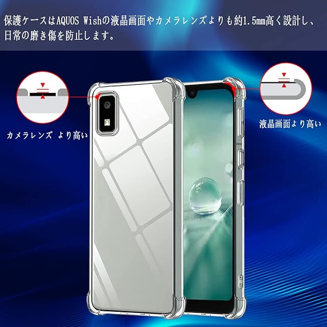 「スリムで軽量なデザイン」 この透明な携帯ケースは、柔らかいTPU素材を採用して作られており、厚さはわずか1.35mmで、スマホ本体に近い手触りを感じることができ、持ち心地も快適です。また、透明度は90%の高さに達し、他に余計な飾りがなく、どんな色でも AQUOS wish / AQUOS wish2 SH-51C SHG06 にフィットし、AQUOS wish / AQUOS wish2 SH-51C SHG06 本来の美しさと高級感をシンプルかつ完璧に再現します。裏面にも透明なので、お好きなシールや写真を入れてカスタマイズもできます。