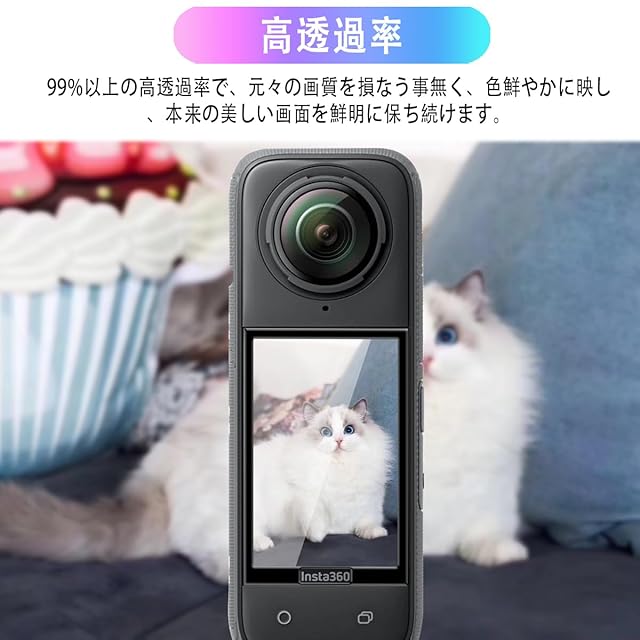 【高透過率】インスタ360 X5 / X4 対応 保護フィルム 高透過率、元々の画質を損なう事無く、色鮮やかに映し、本来の美しい画面を鮮明に保ち続けます。