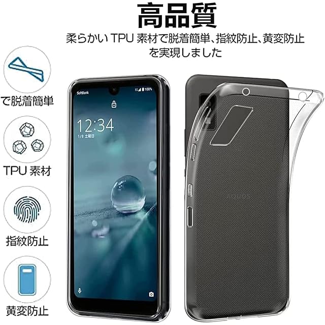 対応機種:かんたんスマホ 3 A205KC 高品質TPU シリコン ケース。透明度が高く、携帯電話本体の美しさを完璧に見せる。