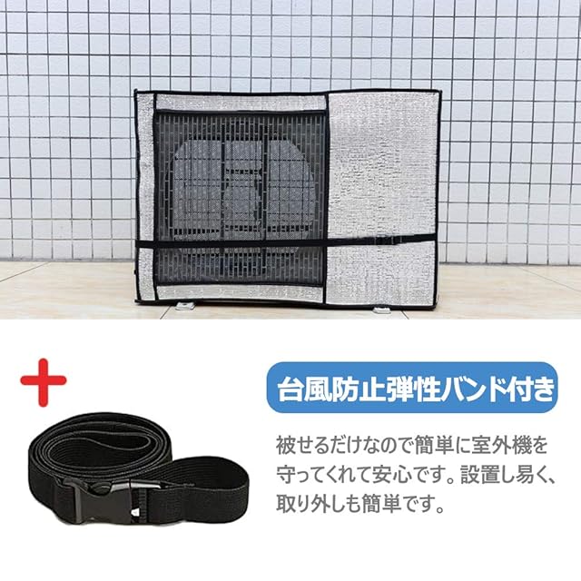 【汚れ・劣化防止】●アルミ箔素材 エアコンの設置に必ず必要な室外機は、屋 外に設置するため、むき出しで放置しておくと、夏場の直射日光や、 冬の積雪、激しい雨や強風な どで様々なトラブルを招くことがあります。このカバーがあれば室外機を悪天候 によるトラブルか ら簡単にガードできます。