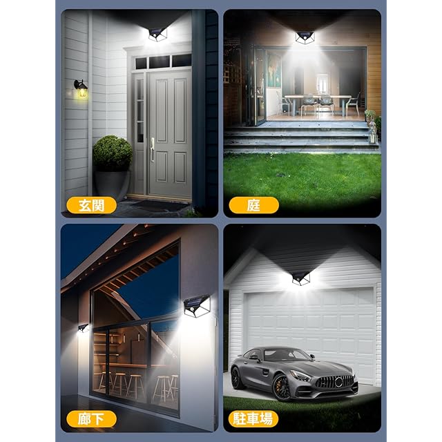 【2024最新版が登場・高輝度・4面発光】ソーラーライト2024の最新進化版が発売されました!アップグレードされた高輝度LEDチップは4面を同時に照らし、照射範囲は270°、3つのスマートセンサーモードを搭載。 熱の発生が少なく、赤外線や紫外線が少ないので虫が集まりにくい。センサーの検知角度が120°になったので、ほとんどの角度から不審者を威嚇できます。 光が柔らかく、夜間の照度が高いだけでなく、居心地の良い雰囲気を演出します。玄関、庭、廊下、店舗、ガレージ、庭、バルコニー、駐車場などの防犯・照明に最適。