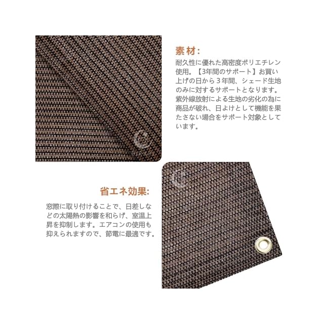 シェードを取り付けることで、室内の温度を下げることができ、省エネ、節電に役立ちます。使わない時は収納できます。カビを防ぐぎ、変形や色色褪せしにくい素材を使用しています。様々な色から選ぶことができます。