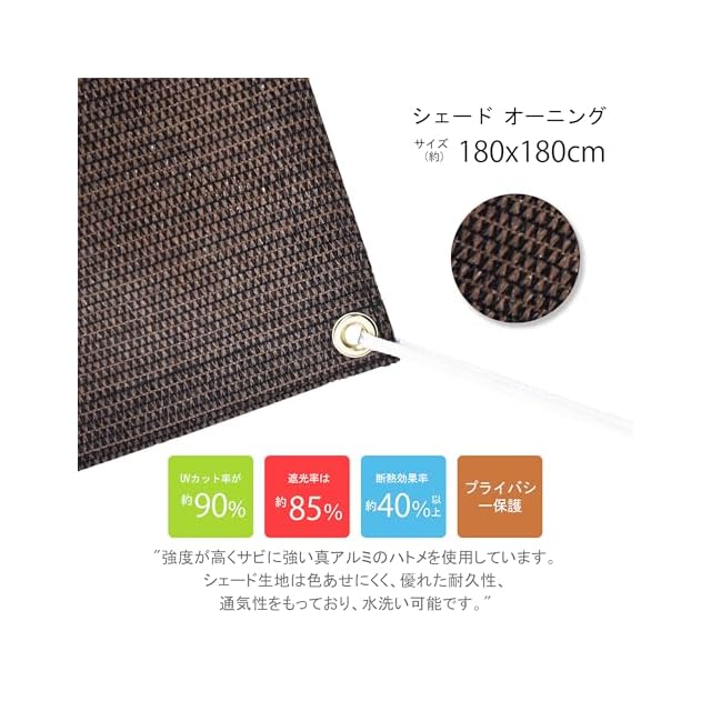 紫外線UVカット率が90%以上,遮光率は約85%。紫外線に強い、色褪せや紫外線劣化に強い糸で織られた生地を使用。