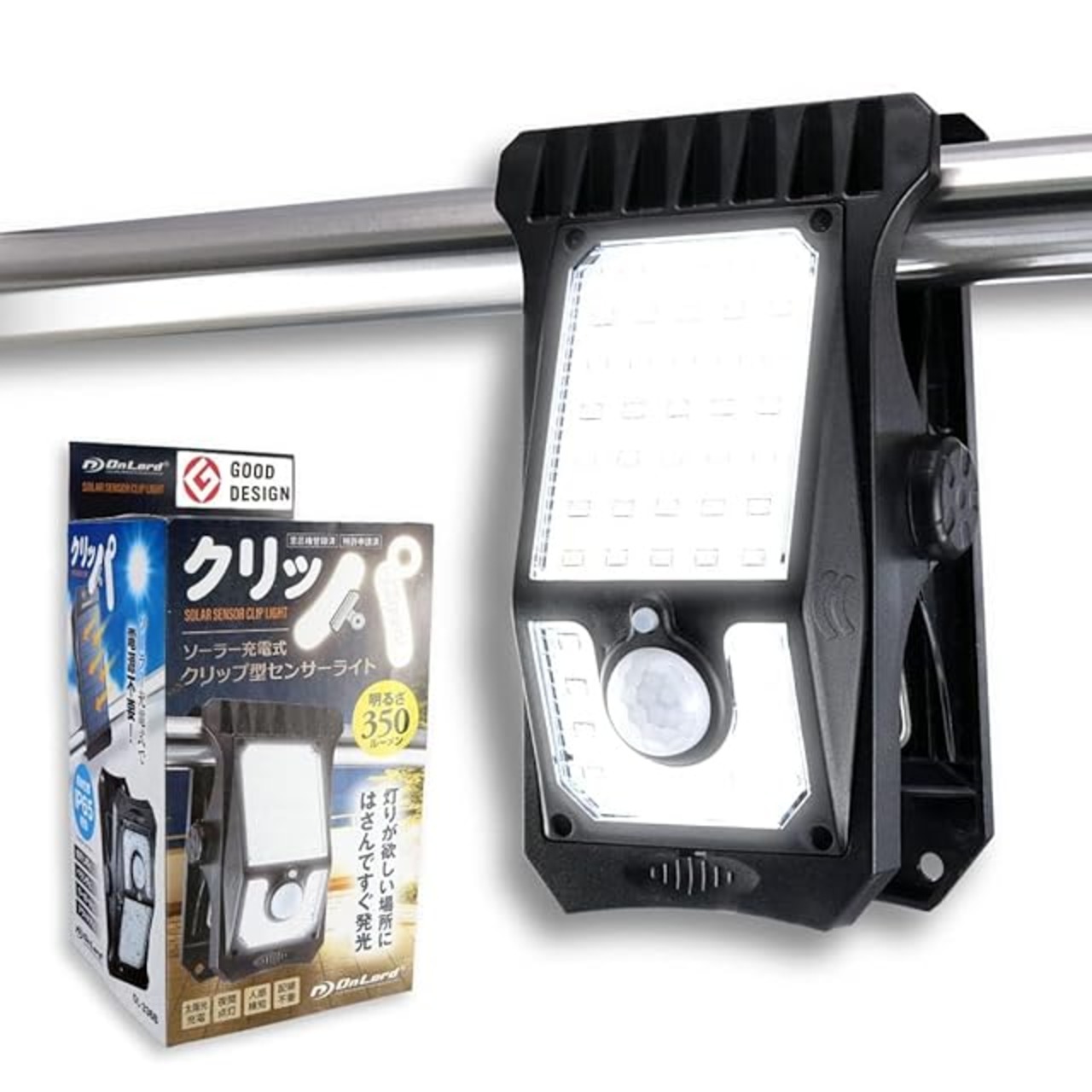 ★クリップみたいに挟むだけの超簡単設置。電池不要でキャンプでも家でも大活躍!! ★設置に工具が不要なので付け替えもラクラク。必要な時、必要な場所へ明かりを持ち運べる。 ★ソーラーパネルとLEDが表裏構造なので、窓際で充電して、そのまま夜の室内を照らすことも可能!! ★灯りが欲しい場所にはさんですぐ発光!物干し竿や手すりなどに簡単取り付け! ★ソーラーパネル一体型を実現したスタイリッシュなクリップ式センサーライト! ★昼間はソーラーパネルで太陽光を効率的に充電!夜間は人感センサーで自動発光! ★明暗と人感の二つのセンサーで夜間に人が通ると強力に自動発光! ★月々の電気代0円!電源不要の省エネ設計!取付も簡単! ★IP65相当という高い防塵防水性能を実現!雨やホコリにも強い安心の防水設計!!