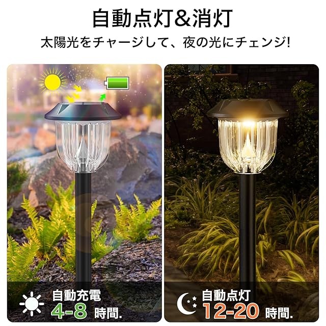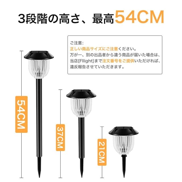 ★【3段階高さ・幅広い場所適用】本製品は最高54CM、3段階の高さ、自由に選択でき、アウトドア・ホームデコレーション照明に幅広く使用!ガーデン、玄関先、庭先、芝生、公園、車道、歩道照明などの屋外照明とデコレーションに理想的な選択です。●※保証1年間:もし何か質問があると、お気軽にお問い合わせください。