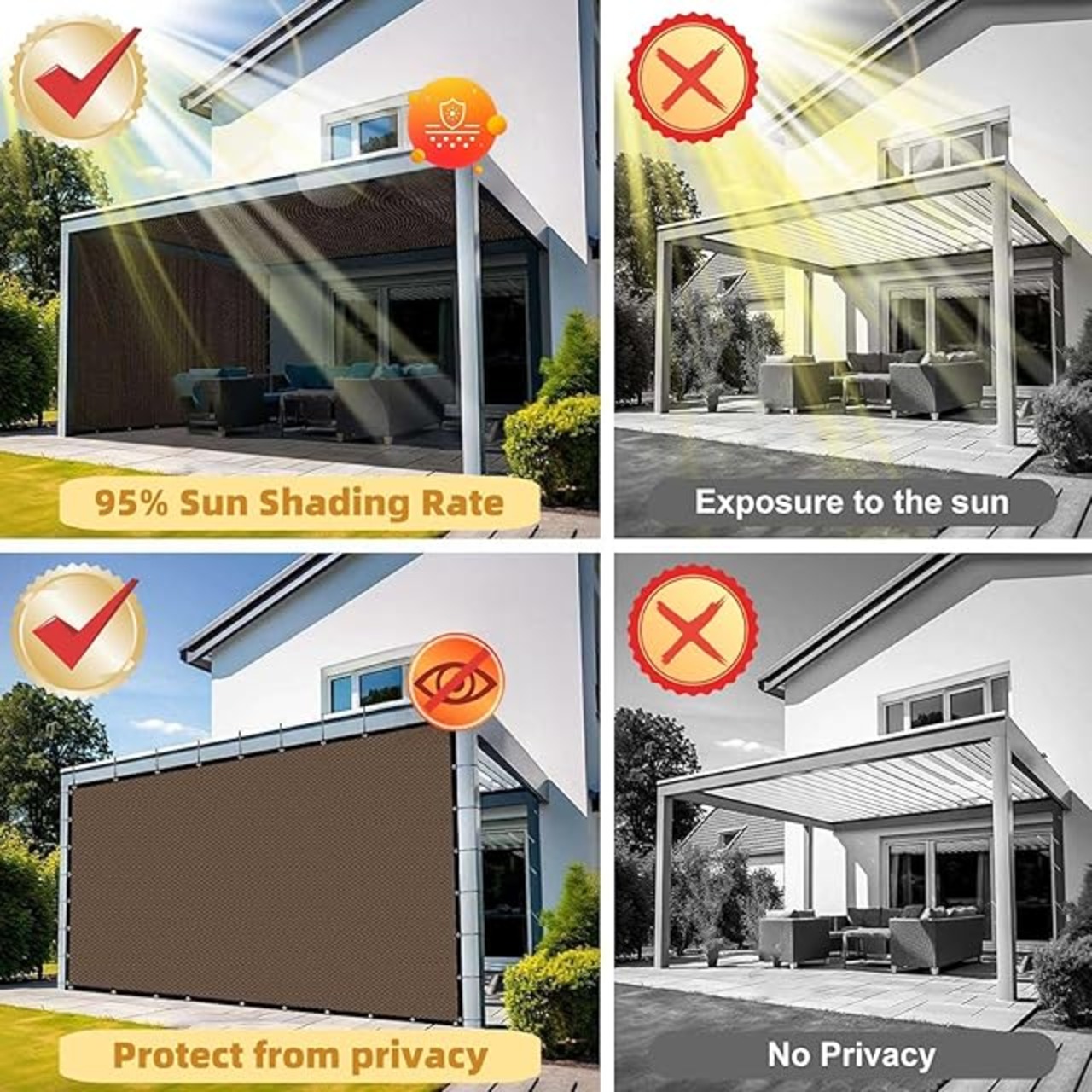 【通気性よい高密度HDPE素材】: バルコニーシェードは通気性があり、透けて見えない高密度ポリエチレン(HDPE)生地を採用して、生地の特性上、暑さをしっかり軽減できます。熱い風は庭日除けシェードを通して、涼しい風に変えます。風通しサンシェードはシェードの内側を涼しくします。夏でも外で快適に過ごすことができます, 目隠し シェードの素材は形状記憶加工を施し、長年でも変形や色褪せしにくい、美しい外観を保ちます。