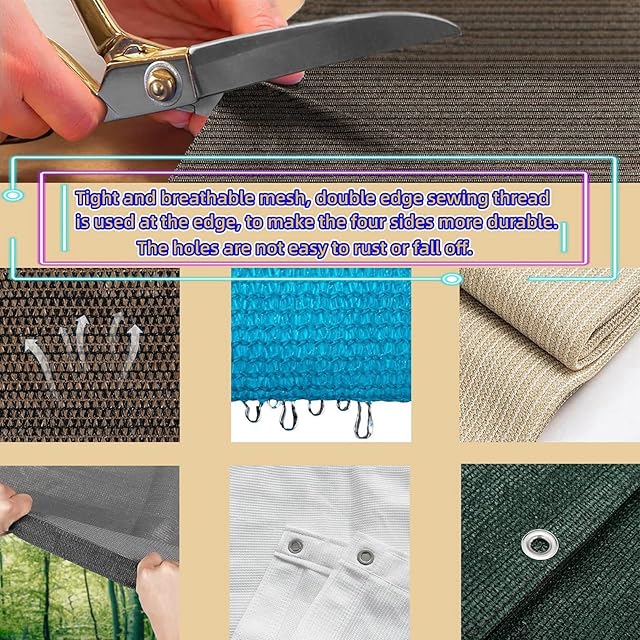 【適用場用】: 農作物、観葉植物等の保護やガーデニングに最適な園芸用ネットです。また、夏の際に、ベランダや窓へ設置し、部屋の遮光や日よけなどの利用もお勧めです。夏場が暑過ぎる東向き/南向きの窓やベランダ、車庫、カーポート、露天駐車で車の日除け、子供用プールの日よけ、庭先、玄関、天井等の日常生活のサンシェードです。それにアウトドア活動、キャンプ、登山、海辺など様々なところで利用できます。