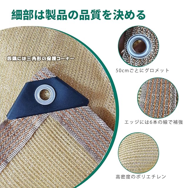 【フルサイズ】フルサイズ、長さは3M~10Mから選べ、高さは0.8M、0.9M、1Mの3サイズ展開で、さまざまなバルコニーの高さに対応取付場所を問わず、手軽に設置できること。上下左右あるハトメはアルミ製、取付けロープとナイロン結束バンドを使用すれば簡単に取り付けて固定できる。縁が三つ折り縫いにしており、ハトメが外れにくく、縁がほつれにくく、一層耐久性が期待できること。