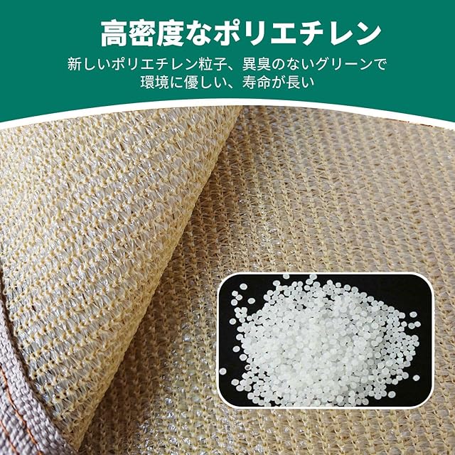 【適用場所】ベランダ、バルコニー、庭など様々な所にご利用いただけます。日よけと目隠しとしてもお進めです。また、風通し性能がよく、外からの視線もしっかり遮断されるので、気分を爽快にさせ、快適な空間を作り出してくれる目隠しシェードです。また、ベランダからの物の落下を防ぐことができる。日常使いでは防塵機能もあり、ベランダを清潔に保つことができる。