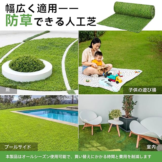 ✅【幅広く適用/お手入れやすい人工芝】庭、ベランダ、バルコニー、テラス、屋根などの屋外やエントランス、幼稚園、店舗、室内駐車場などの屋内に適しています。屋内のフロアマットやカーペットとしても使用できます。取り扱いが簡単、ハサミを差し込むとサクッと切れます。長さが20mmと短いので掃除がしやすく、汚れは水洗いできます。