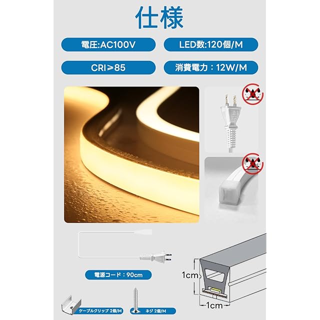 【高輝度&ライン発光】最新のリニア発光技術を採用して、均一な光で、暗い部分がほとんどありません。120°広い範囲照明を実現します。他のテープライトより、光はもっと柔らかい、長時間直視が可能です。
