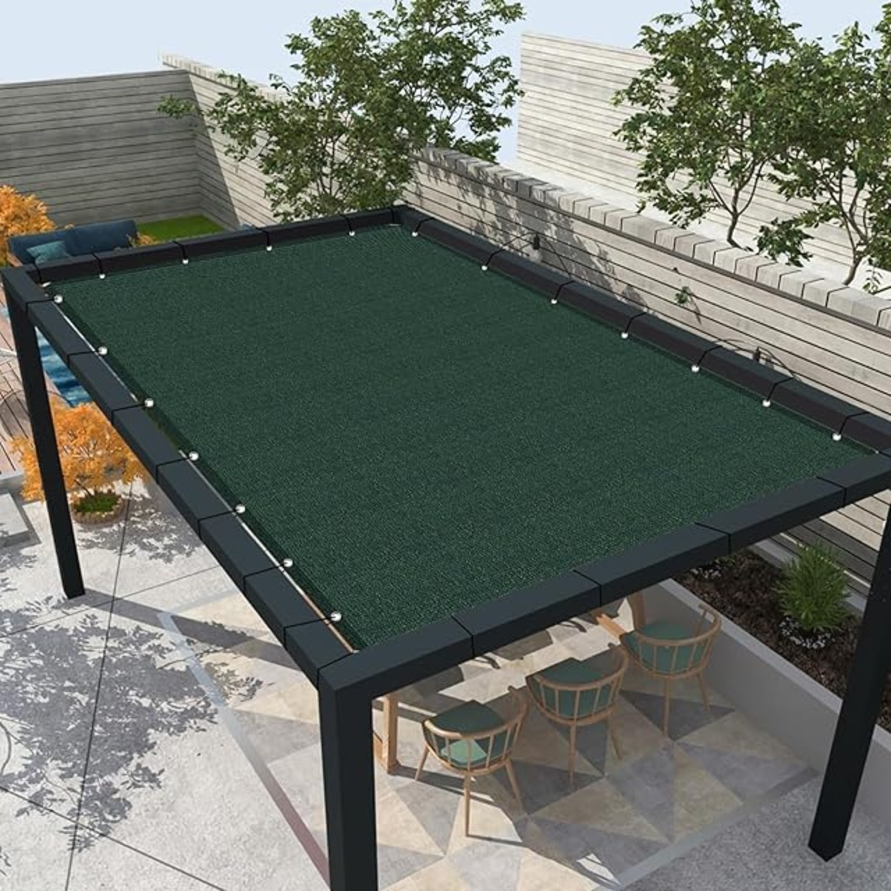 オーニングテント サンシェード オーニング 450 x 500 cm, 通気性 断熱 遮光 98%UVカット 風通しもよい 四辺ハトメ, 日よけ シェード オーニング, あらゆるサイズと穴間隔のカスタマイズをサポート, ベランダ廊下/庭下/庭先用/工事現場へ/屋外 用/屋外, 濃い緑色