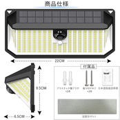 【576個高輝度LED/270°照明】弊社のソーラーライトは466個高輝度のチップを搭載しており、従来の製品よりも大きく、照明効果に優れています。3面発光のデザインで照明角度は最大270°で、照明範囲は広くで照明効果はもっとよくなります。小型でコンパクトなデザインなので、設置や保管の自由度が非常に高いです。