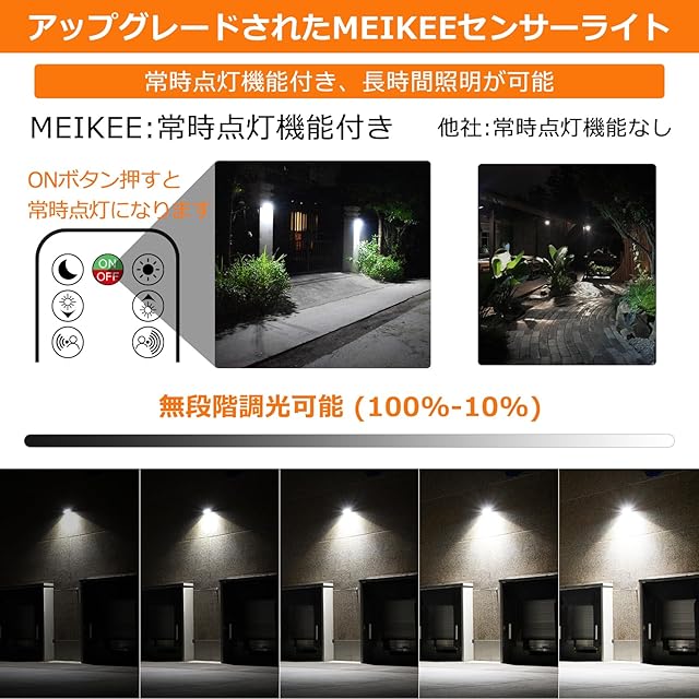 ご注意点:人や車が頻繁に通り過ぎる場所に設置しないでください。そうでなければ、ライトの性能負担、損失は比較的大きく、点灯したまままたは点滅繰り返してを引き起こす可能性があります。MEIKEEの商品をお買い上げ日より、2年間の保証サービスを提供いたします。何か問題などが御座いましたら、お手数をおかけして恐縮ですが、注文番号、質問内容を添えて【アカウントサービス】-【注文履歴】-【販売:MEIKEE-JP】-【質問する】のほうでお気軽に弊社までご連絡くださいますようお願い申し上げます。