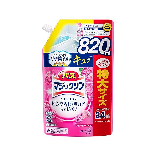 バスマジックリン 風呂洗剤 泡立ちスプレー SUPERCLEAN アロマローズの香り 詰め替え 820ml