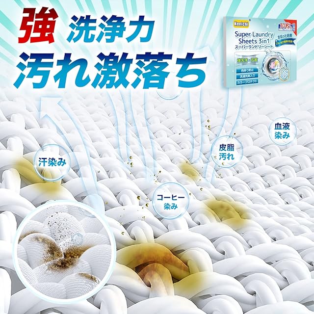 【3in1高機能】Kenichiスーパーランドリーシート3in1は、通常の色移り防止シートとは異なり、色移り防止効果に加えて洗濯やカラープロテクト機能も備えています。洗濯後の色あせや色移りを防ぐだけでなく、衣類をより長く美しく保つことができます。これにより、衣類の劣化を防ぎ、長く愛用することができます。