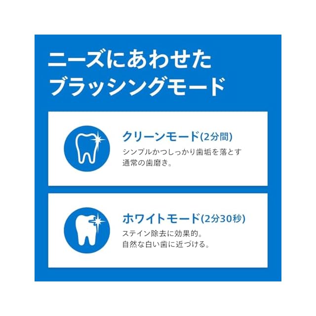 ✅【ブラッシングモード】クリーンモード、ホワイトモード 2つのモードでお好みの磨き方を選択