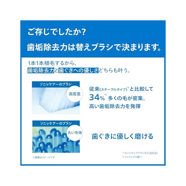✅ 【特徴】ソニッケアー史上最高のブラシヘッド※ 歯垢除去力等主要機能の総合力を弊社他製品と比較
