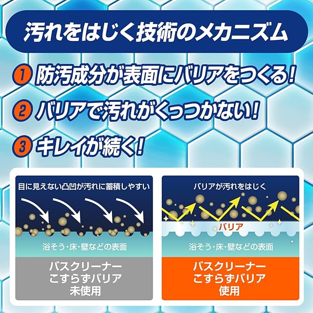汚れをはじくバリア成分配合で、汚れがくっつくのを防ぐ!