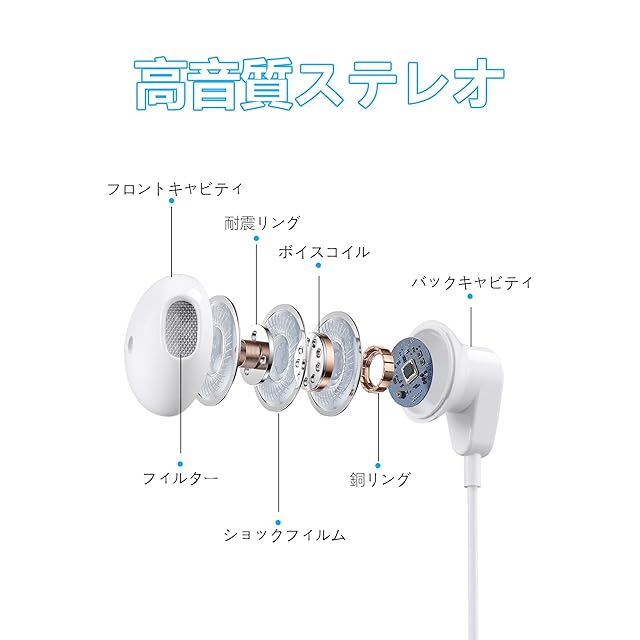 ★「優れた耐久性」イヤホン線材の中身銅線と外部TPE製被覆は高品質・軽量・高強度な素材を採用し、一般的なイヤホンより10倍以上の耐久性をもち、引っ張っても断線しにくい。環境対策にも考慮したコードに高耐久ナイロンを嵌め込み、有線イヤホンが最も断裂しやすい端子の部分をSRチューブで強化し、耐久性に優れています。