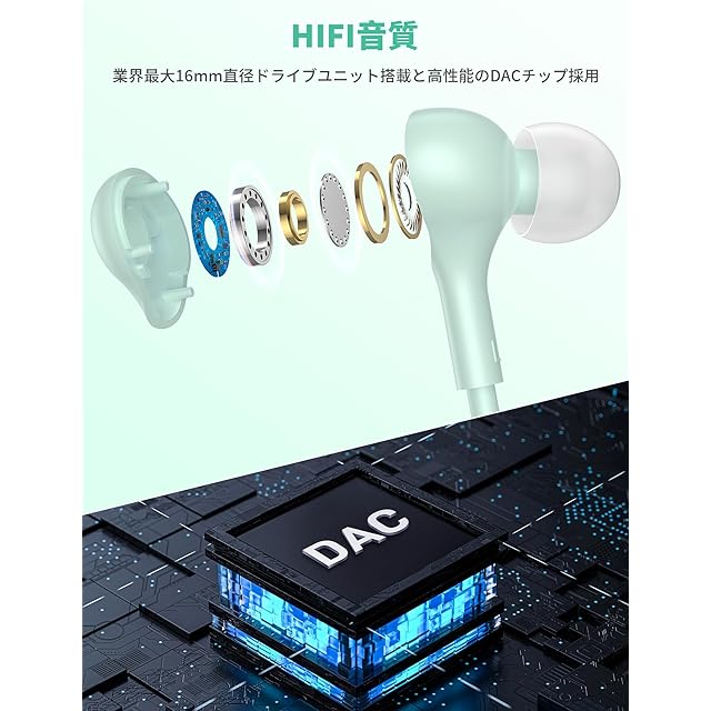 高性能DACチップ内蔵:業界他のタイプcイヤホンとは違い、最新DACチップとダブル騒音低減技術でノイズが少ない状態で音楽再生が可能で、より高音質で音楽を楽しめます。それだけでなく、互換性も大幅にUP、USB Type-Cポートのある端末に挿すだけでご使用いただけます。たとえGalaxyやPixel、iPadなどはアナログ出力非対応であっても、音楽も再生できます。ご注意:USB Type-Cポートと3.5mmイヤホンジャック両方のあるデバイスにこのイヤホンをご使用できません場合がありますので、ご了承ください